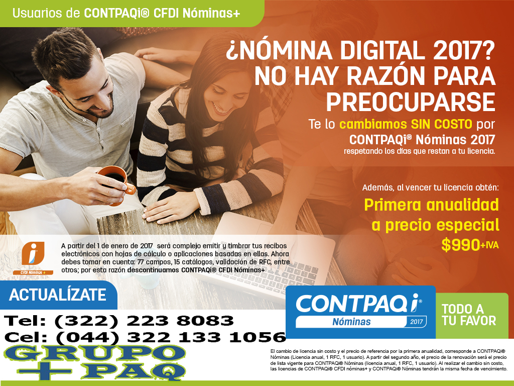 PARA LOS USUARIOS DE CONTPAQI CFDI NOMINAS + Navegación de entradas Nueva Nomina Digital, en que consiste. (Obligatoria para todos) Enterate LISTO PARA LA NOMINA DIGITAL 2017